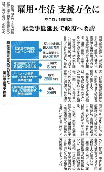 新型コロナウイルス対策の特別措置法や感染症法などの改正法が成立。雇用.生活.支援万全に!緊急事態宣言の延長を受けた主な事業者支援策!コロナ禍の影響深刻.支援が急務!