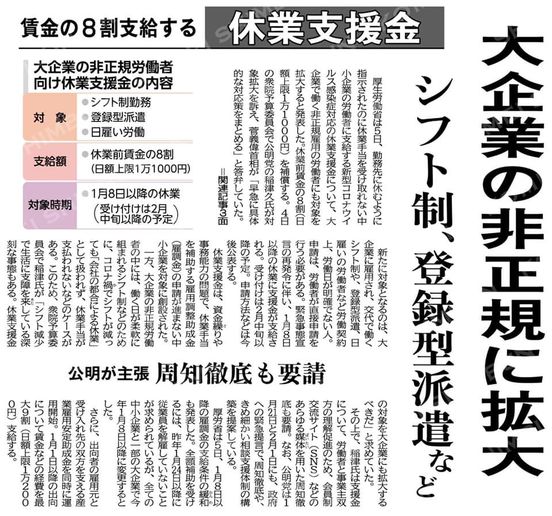 賃金の8割支給する休業支援金➡︎大企業の非正規に拡大!