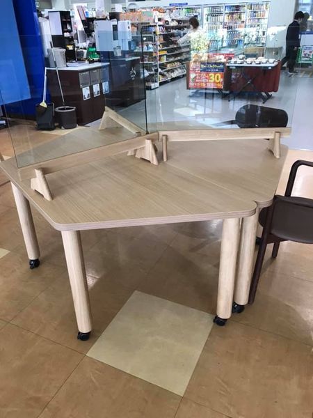 また、守口市役所内(ローソンカフェ)の机も温かみのある木目風に新調され、飛沫防止のパーテーションも設置されました。市民の方々の安全が第一です。