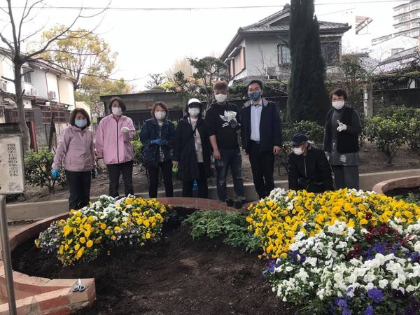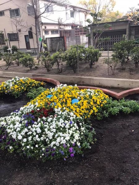 環境保全団体.ピースロード会の皆さんとLike the earthの皆さんとで(仮称)もり吉ガーデンの🌸花🌼のお手入れを行いました。もり吉のほっぺがふっくらとしてきたでしょうか?
