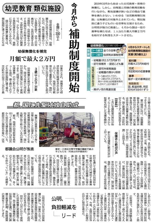 🌠今月から国は、幼児教育類似施設について、公明党の推進により一定の基準を満たせば、1人当たり最大月額2万を給付する制度をスタートさせました。