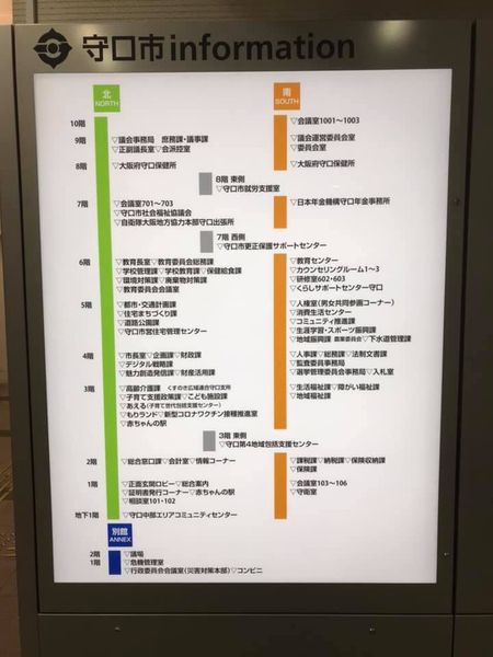 💫守口市役所正面玄関には、新たにデジタルサイネージ.電子看板システムが設置され、守口市のinfomationの中には、今年度から設置されたデジタル戦略課や魅力発信創造課も表示されていました。