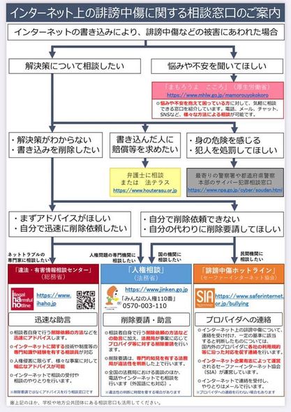 ⭐️インターネット上の誹謗中傷に関する相談窓口もあります。