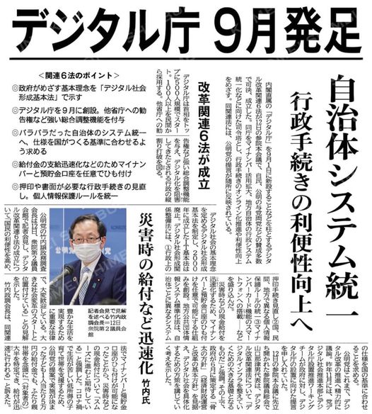 🌠「デジタル庁」を9月1日に新設することなどを柱とするデジタル改革関連6法が賛成多数で可決されました。