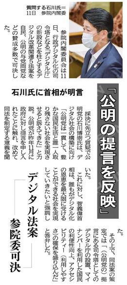 ⭐️行政手続きのオンライン化推進や利便性向上を目指す同法には公明党の提言が随所に反映されています。