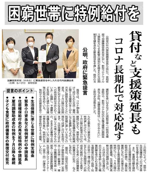 🌠公明党は官房長官に対して困窮世帯支援を求める緊急要望書を手渡しました。
