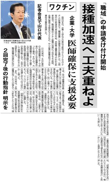 ➡︎政府は、企業.大学などの単位で新型コロナウイルスワクチン接種を行う「職域接種」の申請受付を開始し中小企業の接種体制で工夫を重ねる必要性にも言及しました。