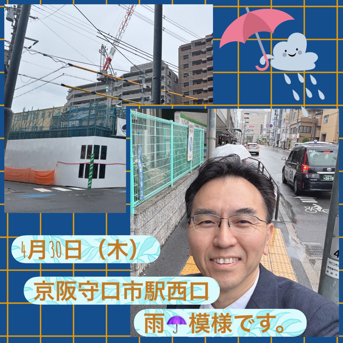 💫4月30日(木)雨が降りしきる中でしたが、本日は京阪守口市駅西口より朝の駅立ちをスタートしました。