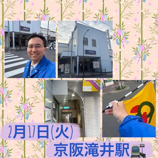 🤩2月19日(木)おはようございます!京阪土居駅前より朝の駅立ちとさつき学園の見守り活動に参加!💫子供たちが元気いっぱい「おはよう!」とありがとうね。⭐️今日から2月議会がスタートし、3月24日まで行…