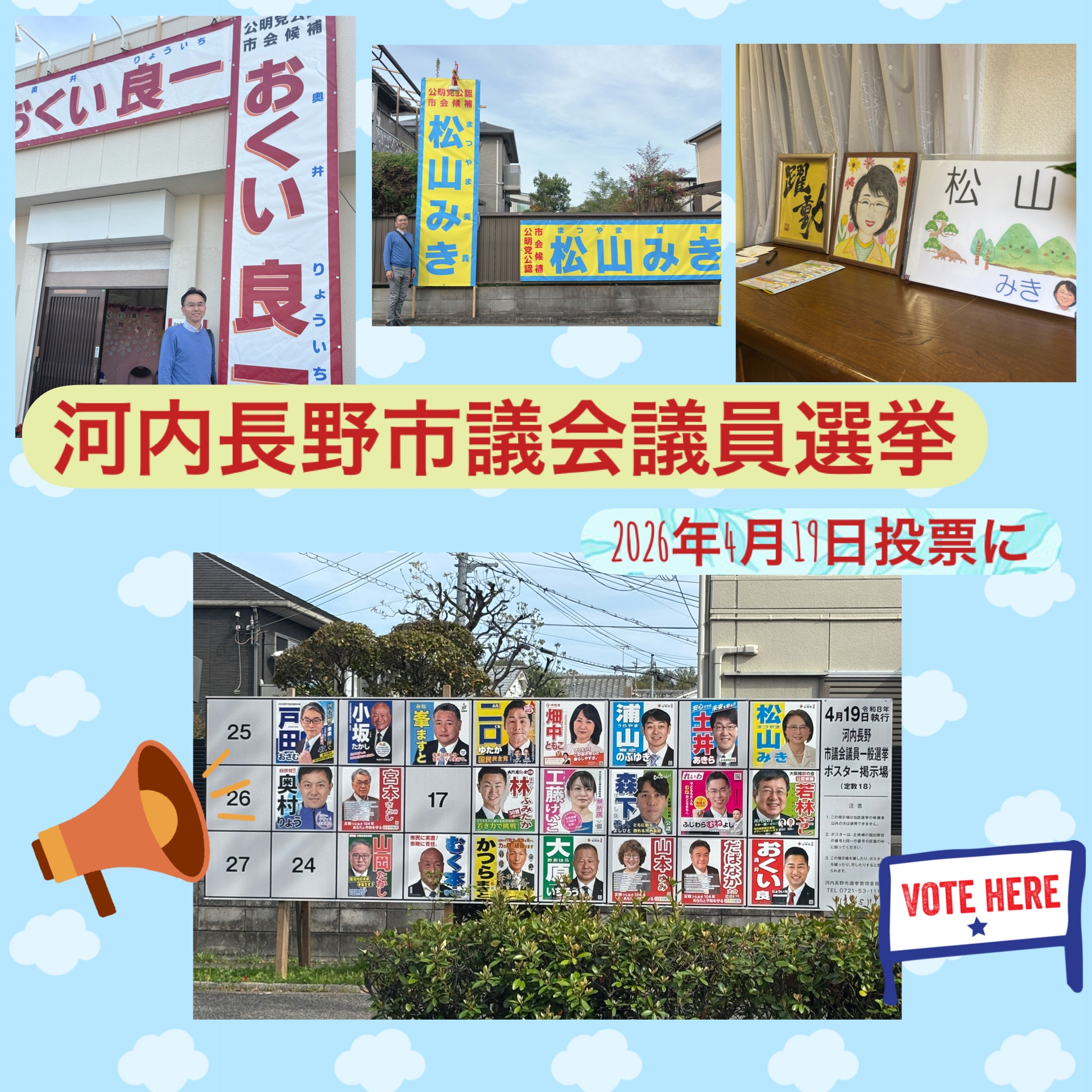 こんばんは!福本けんいちです。 ✨河内長野市議選(定数18)は、4月12日告示、4月19日投票です。 4月13日からは期日前投票も始まりました。 🌟公明党からは、大原いちろう、浦山のぶ…
