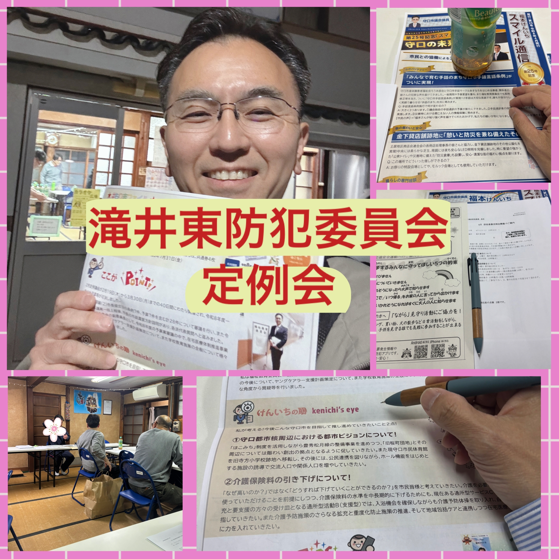 こんばんは!福本けんいちです。 ✨毎月1回行われる滝井東防犯委員会の定例会に参加しました。新しく防犯委員会に入会していただいた方からは、挨拶と抱負についてお話しいただきました。 💫会議…