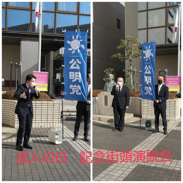 🌸全国各地で公明党「成人の日」記念街頭演説会を開催。守口市ではエナジーホール前で、いさ進一衆議院議員と市議団で行い新成人の皆さんの門出を祝福。若者の声を政治に届け様々な支援の後押しをしていく!と訴えました🎤