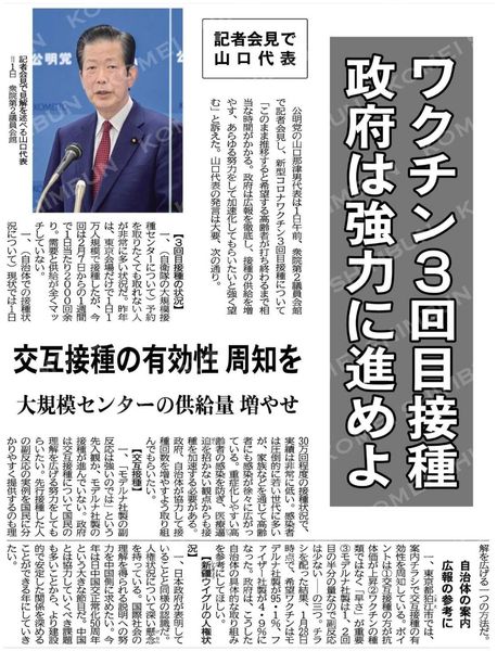 ポイントは①交互接種の方が抗体価が上昇②ワクチンの種類ではなく「早さ」が重要③モデルナ社製は1、2回目の半分の量なので副反応も少ない #公明新聞電子版