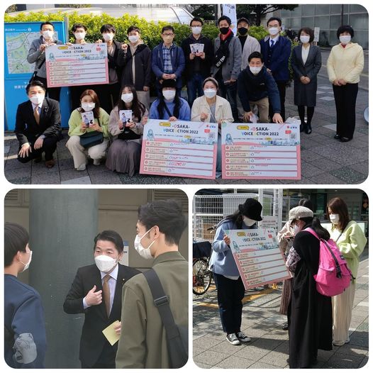📣大日駅で公明党大阪府本部主催、「OSAKA VOICE ACTION 2022」を党青年局の皆さんと実施しました!いさ衆議院議員もかけつけて頂き、一緒にアンケート活動を行いました‼️