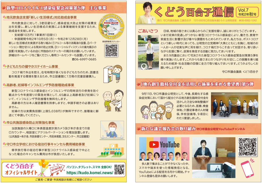 くどう百合子通信 Vol.7が完成いたしました。 画像をクリックしますと、ダウンロード可能なPDFファイルが開きます。