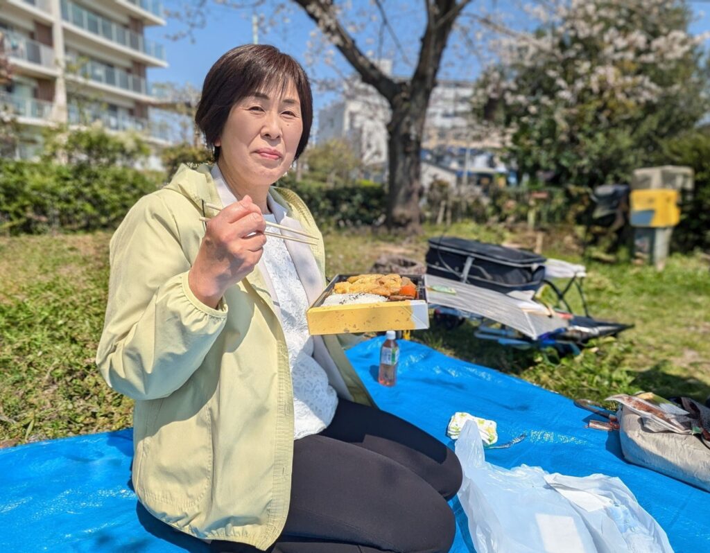 お昼はお誘い頂いていた体操グループの皆さんと、桜の下でランチタイムです。😊