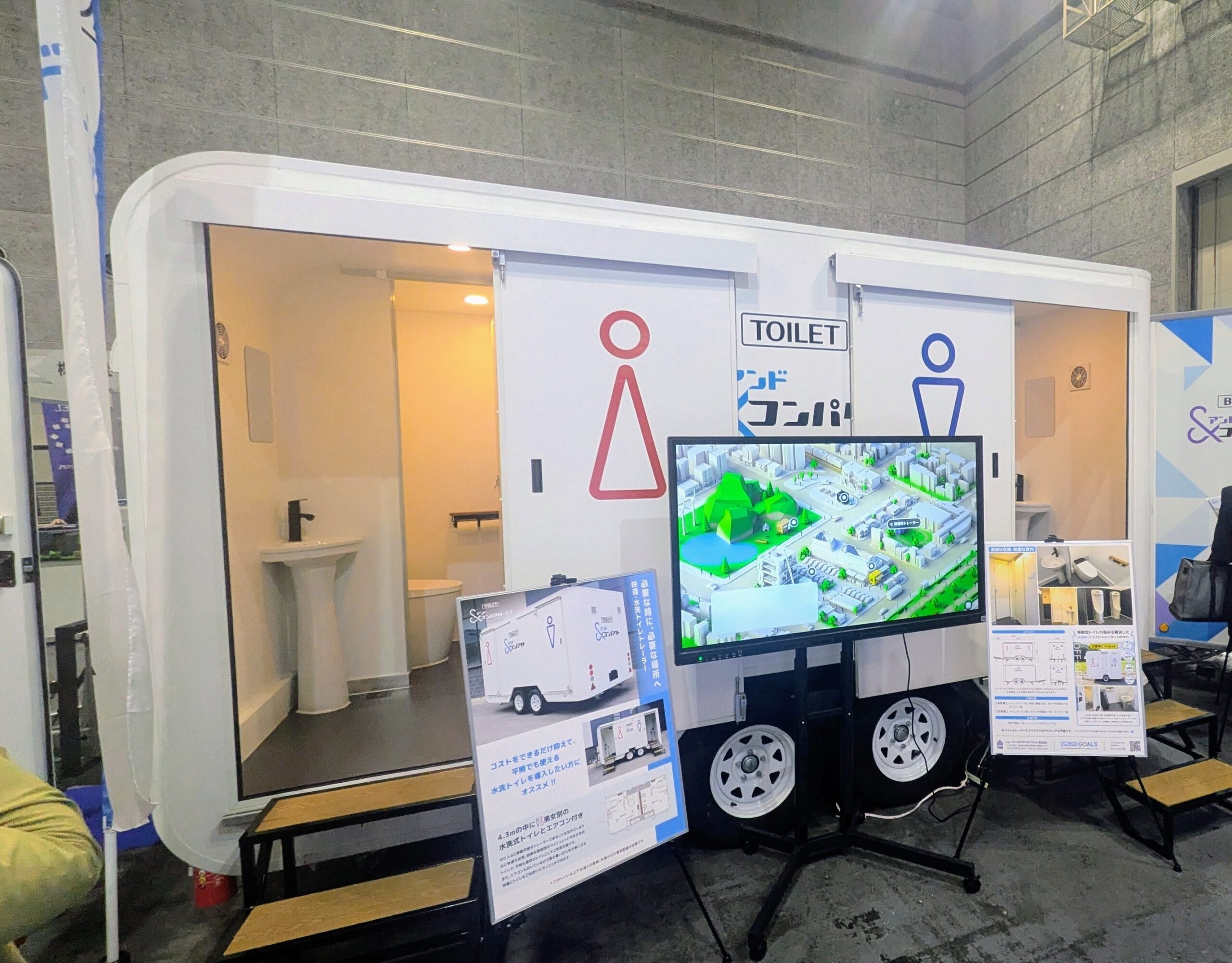 今回、大阪トレーラーハウスショーは第1回とあって様々な企業の展示があり、中でもトイレトレーラーは、議会でも取り上げたこともあってとても興味深かったです😊