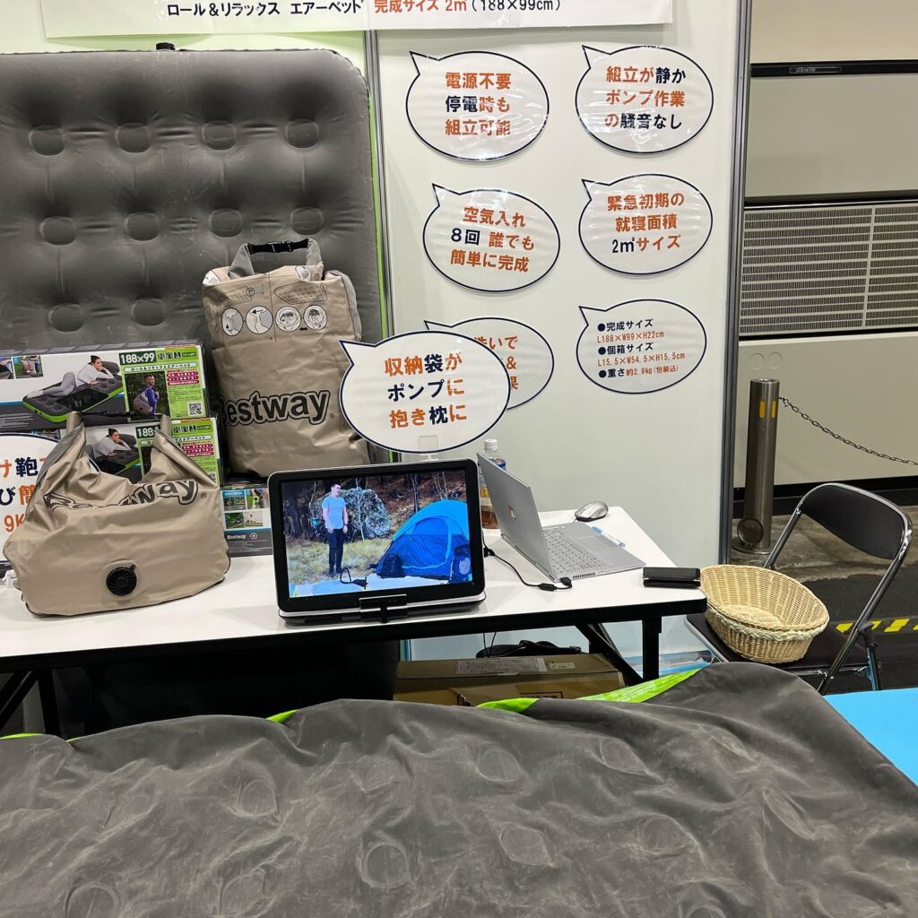 子供でも簡単に膨らます事ができる、エアーベットや、いろんなタイプのトイレを関心を持って見させて頂きました。