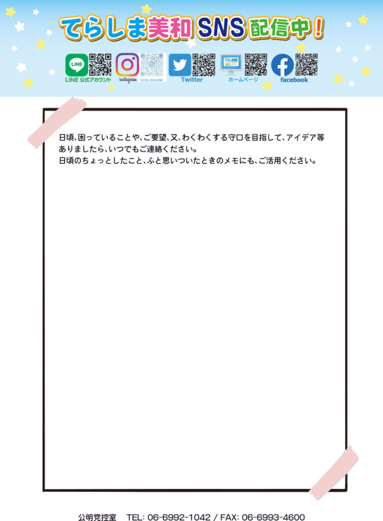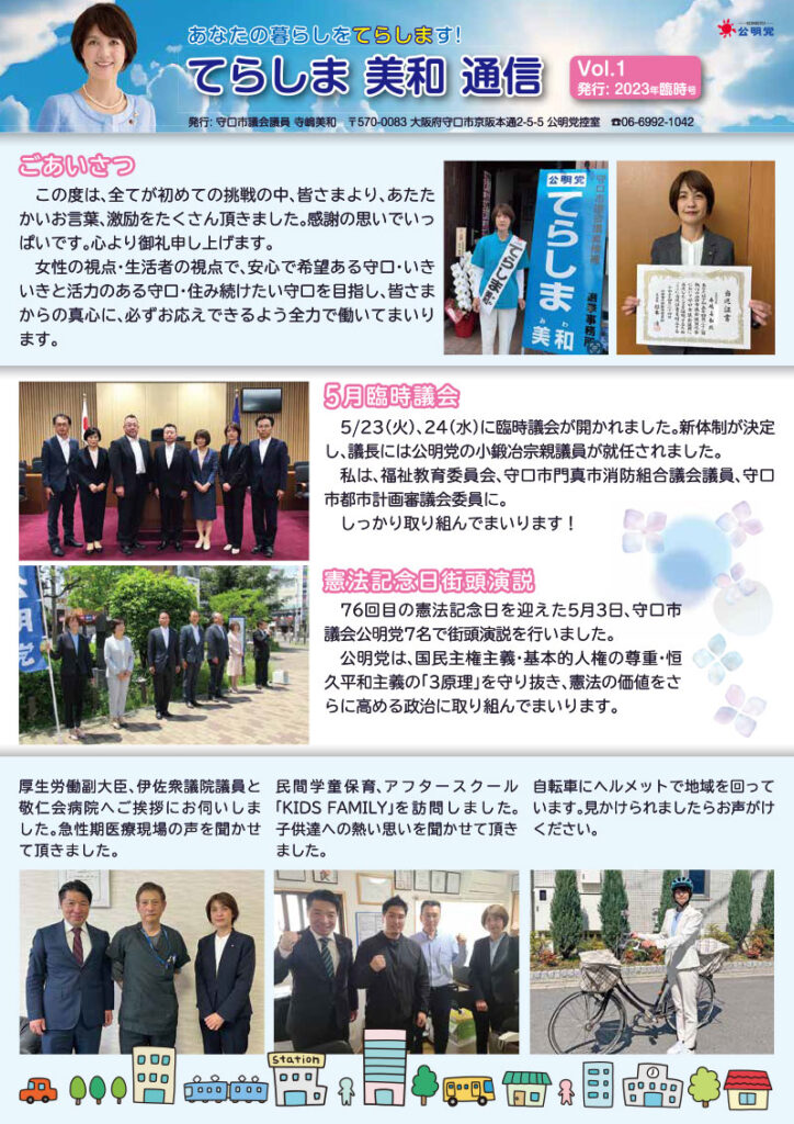 てらしま美和通信 Vol.1が完成いたしました。ボタンをクリックしますと、ダウンロード可能なPDFファイルが開きます 。