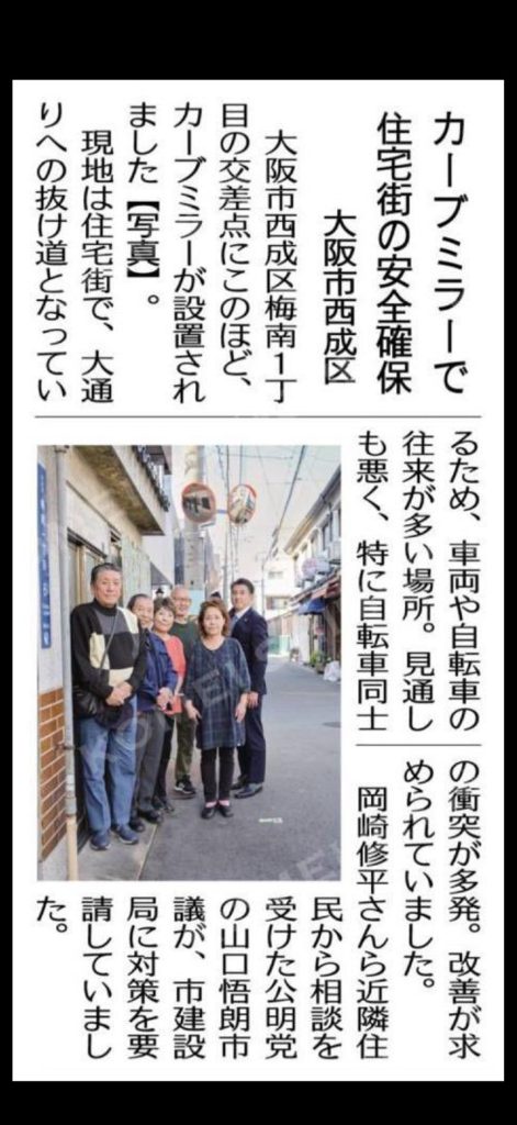 本日付の公明新聞に、地域の皆さまと取り組んできた住宅街での安全対策が掲載されました。