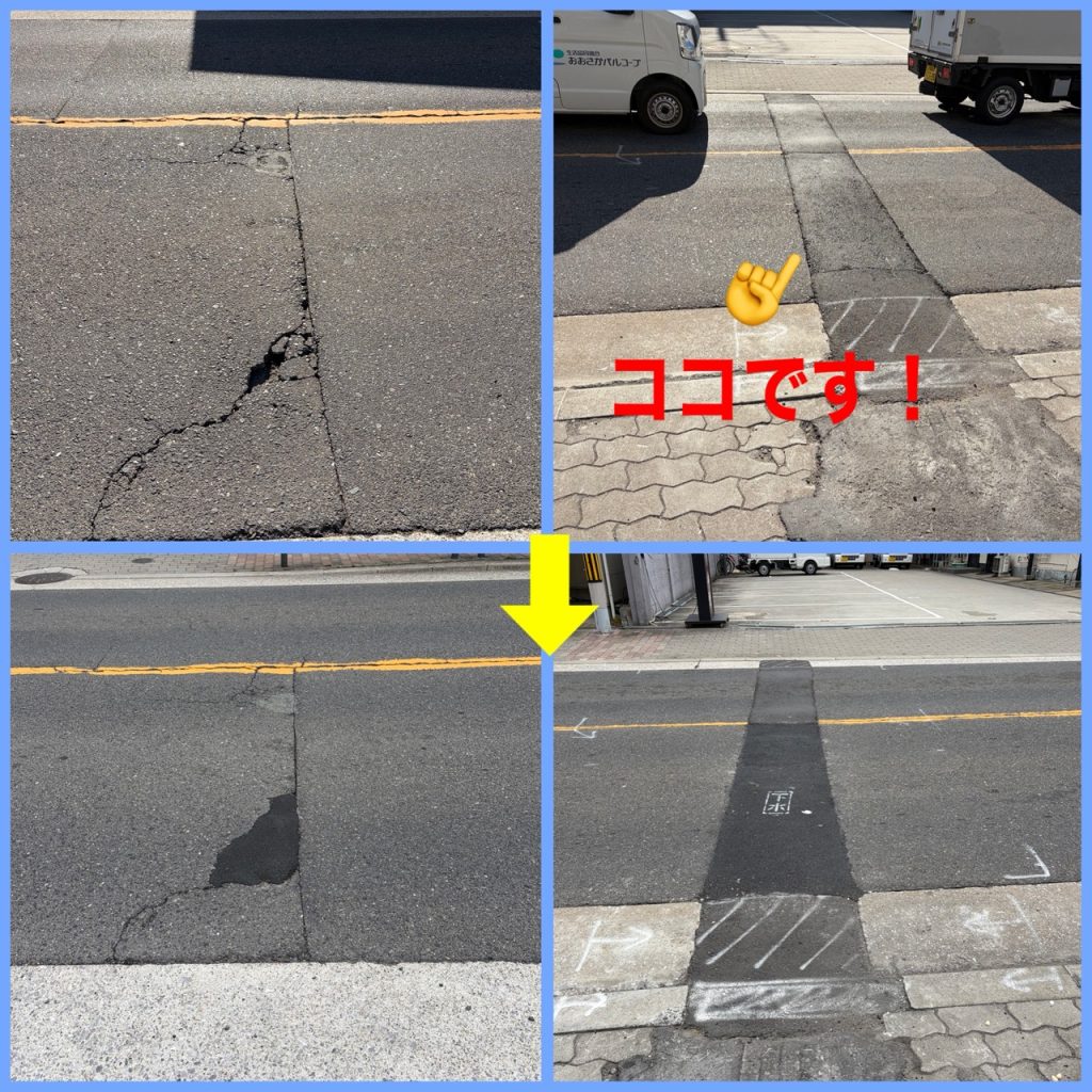実際に立ってみると、音も振動も想像以上でした。すぐに担当部局と連携し、仮舗装の補修と陥没箇所を緊急対応。